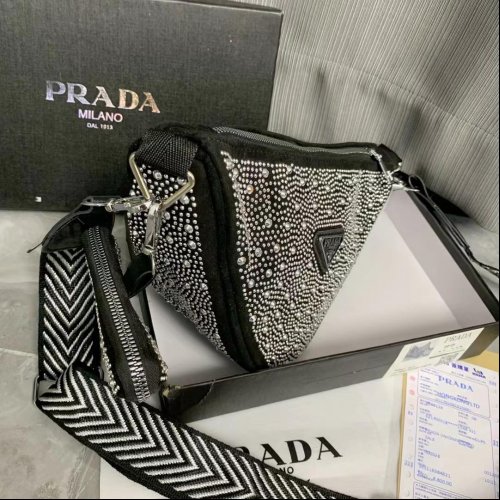 Prada Crystal Triangle Crossbody Bag With Coin Pouch Premium Quality Imported Bagswith Beautiful Crystal Workblack Color With Silver Stones