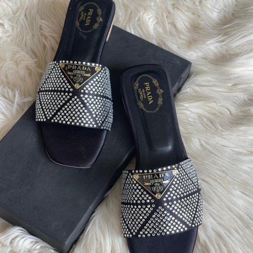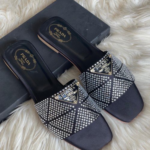 Prada Logo Stone Slippers