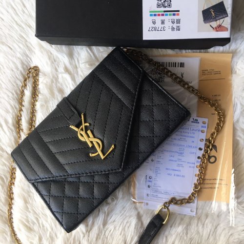 Ysl Cross-body Bag With Golden Hardware And Brand Packaging, Black Color, With Long Chain+belt, Material : Pu Leather Size: 22x15 Cm